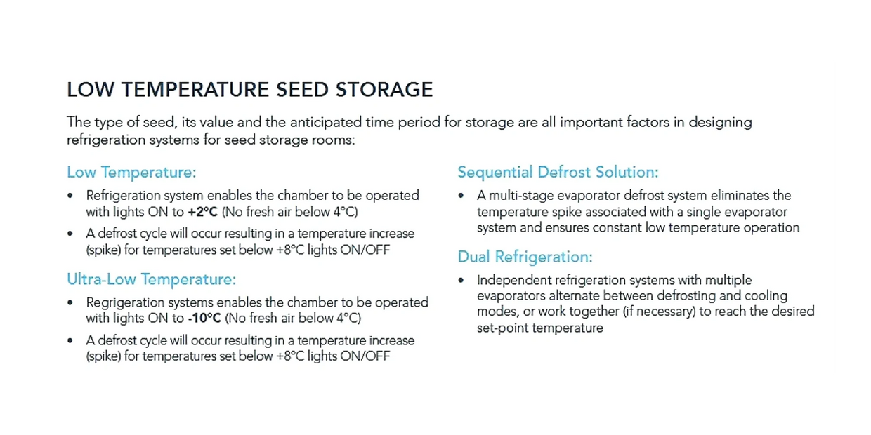 Cobeal's Cold Storage Rooms are designed for optimum seed storage conditions.