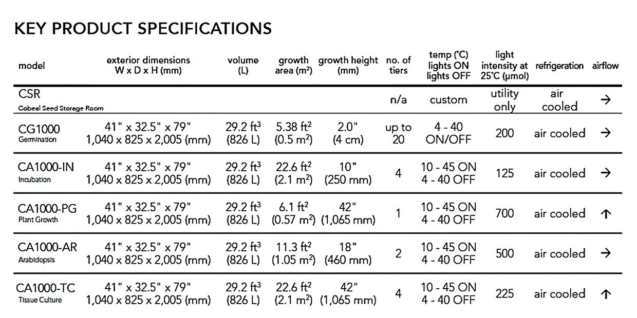 These two charts answer different halves of the same question: what chamber fits your biology, and how will it behave at your setpoints? The specification table tells you what each unit can physically deliver—height, usable area, tiers, airflow geometry, light intensity, and temperature range. That’s the lens for protocol fit and throughput. The low-temperature chart then explains the refrigeration reality at those settings: when fresh air is off limits, how defrost cycles affect stability below +8 °C, and which strategies (sequential defrost, dual refrigeration) keep spikes from touching your samples. Read them together and you’ll see both the capability and the operating envelope.